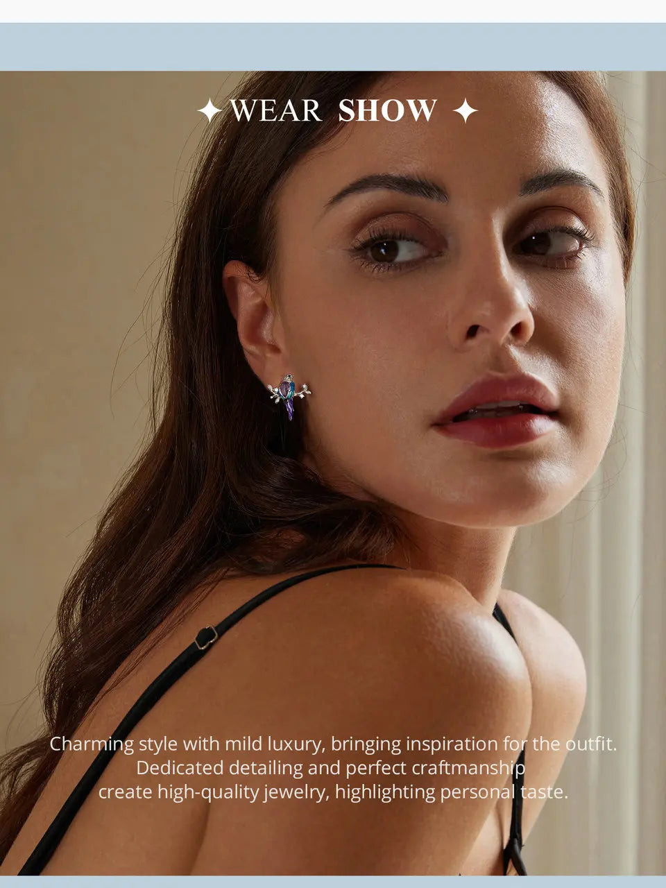 Aretes elegantes y llenos de vida, inspirados en la libertad de las aves. 💜✨