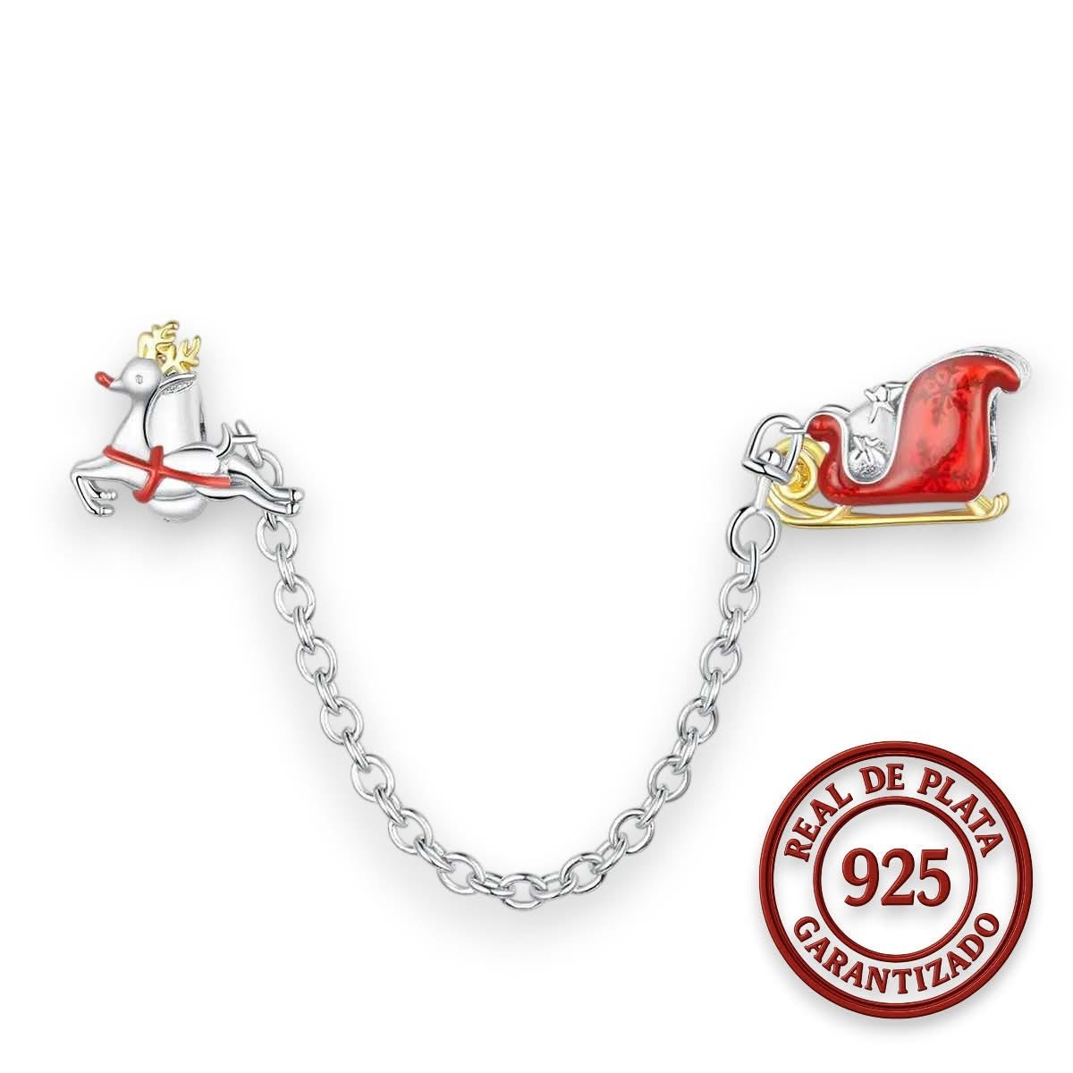 Charm navideño en forma de trineo rojo con detalles dorados. Elaborado en plata 925 certificada y con garantía de 6 meses. Un toque festivo y brillante para estas fechas. 🎄✨