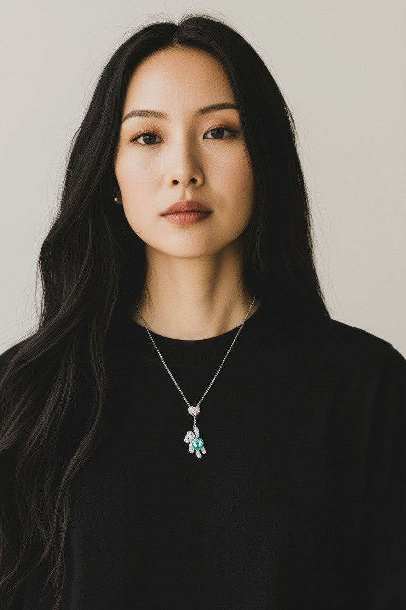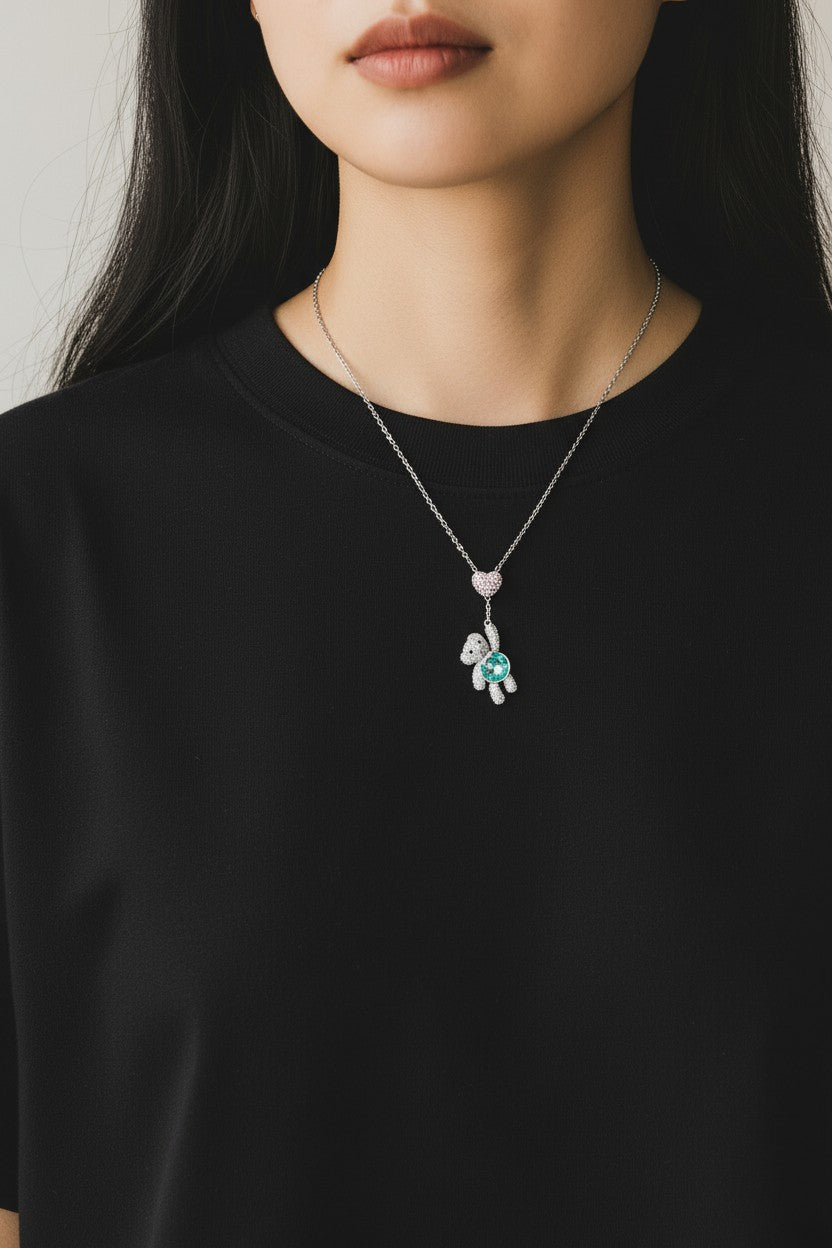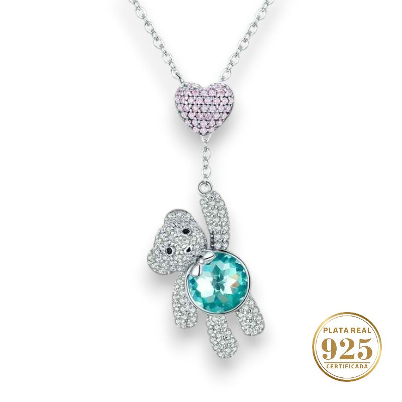 El corazón rosado aporta un toque delicado y femenino, mientras el osito con cristal azul refleja destellos hermosos que iluminan cualquier look. Una pieza tierna y sofisticada al mismo tiempo.